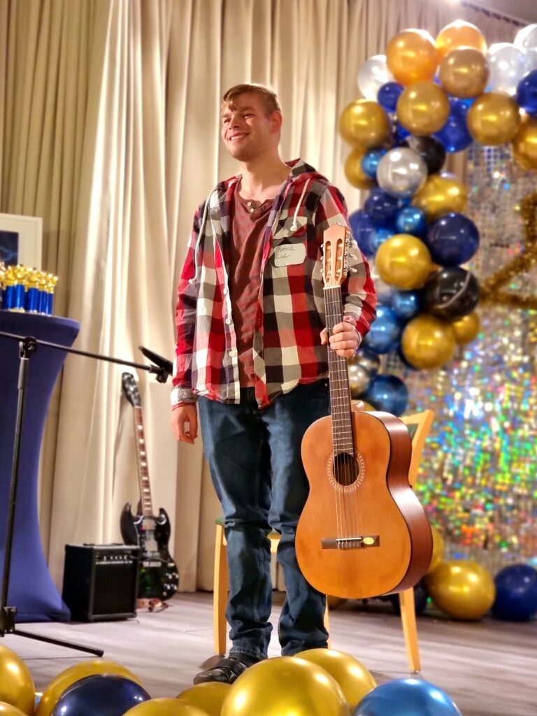 Vom Volkslied über bekannte Popsongs bis hin zur Sitzpolka und einer Luftgitarrenperformance gab es viele verschiedene kreative Beiträge zu bewundern. Nicht zu vergessen die spektakulären Tanzdarbietungen und instrumentalen Beiträge. Da hatte es die Jury wirklich nicht leicht eine Wahl zu treffen. Aus allen ersten Plätzen hat die Länge des Applauses der Zuschauenden den Künstler bestimmt, der den Oscar mit nach Hause nehmen durfte. Gewonnen hat ihn Patrick aus der WG 4 mit seinem Instrumentalstück auf der Gitarre.