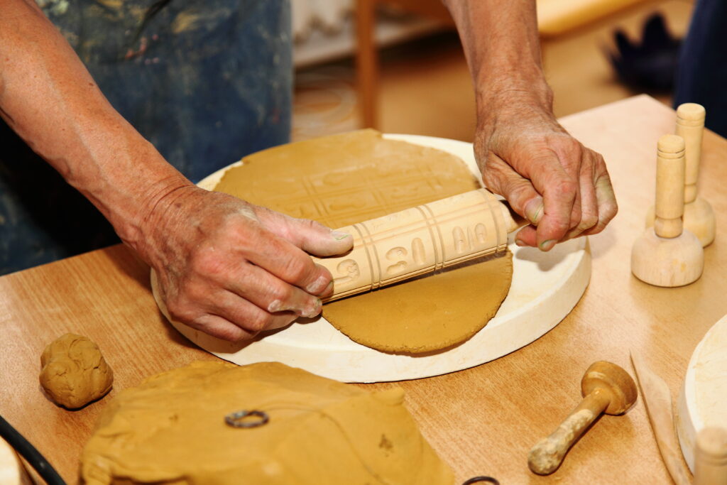 Formen Sie Figuren, Teller und Tassen mit Ihren Händen. Färben Sie Ihre Werkstücke mit besonderen Lasuren und Stiften. Danach wird Ihr Produkt im Ofen gebrannt. Wenn Sie möchten, können Sie Ihre Keramik mit nach Hause nehmen – oder bei unseren Festen verkaufen.