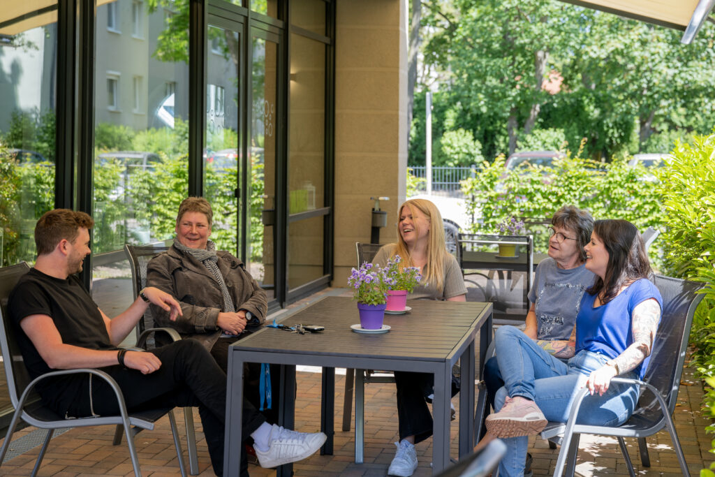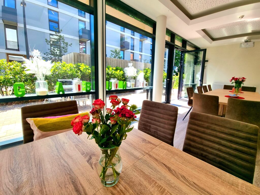 Das Haus ist komplett barrierefrei und bietet für jede*n Nutzer*in ein eigenes Zimmer mit Bad und einer Dusche. Eine individuelle und liebevolle Gestaltung ist uns besonders wichtig. Der auf dem Gelände befindliche große Garten lädt Bewohner*innen und Besucher*innen zur Entspannung im Freien ein.