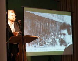 Die Rolle des ausgebildeten Schauspielers und Sprechers war Albert Schweitzer selbst, der von seinem Leben, Werk und Denken erzählte, gewürzt mit vielen kleinen Anekdoten. Bildprojektionen und musikalische Einspielungen begleiteten die Aufführung. Norbert Eilts verstand es, mit seiner lebendigen und anschaulichen Sprache die Zuschauer*innen zu fesseln und endete mit Albert Schweitzers zeitloser Ethik der „Ehrfurcht vor dem Leben“, die auch in der heutigen Zeit an Bedeutsamkeit nicht verloren habe.